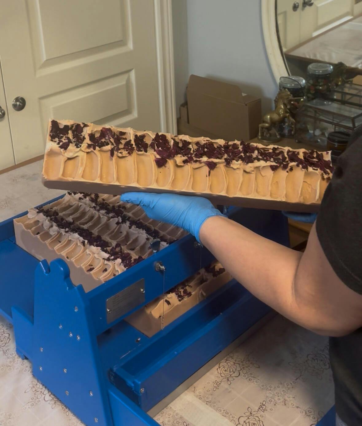 This is hands down the best mold I’ve ever used! The liner is thick and sturdy! The walls of the liner do not stretch or cave in. You get a perfect pour every time with no mess. The box comes apart easily by sliding the sides up. Soap and liner pop out effortlessly and unmolding the slab is a dream! I also have the W & W slab cutter which works perfectly with this slab mold. Thank you July for intuitively knowing what soap makers need to make their job easier and creating it for us!! I can’t wait to try more of your molds!